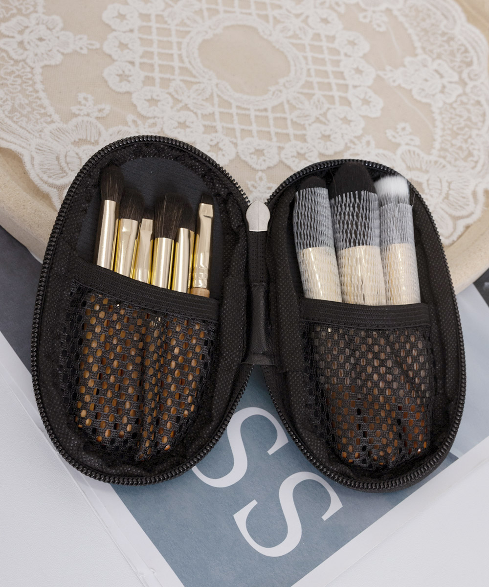 専用収納ケース付きで持ち運びに便利。ファンデーションからアイメイクまで幅広く対応。