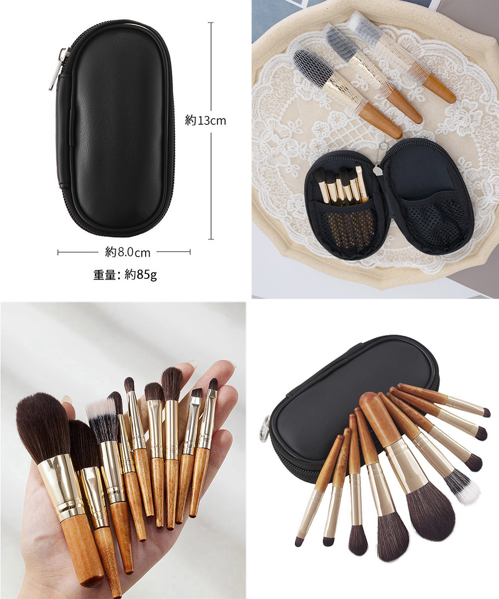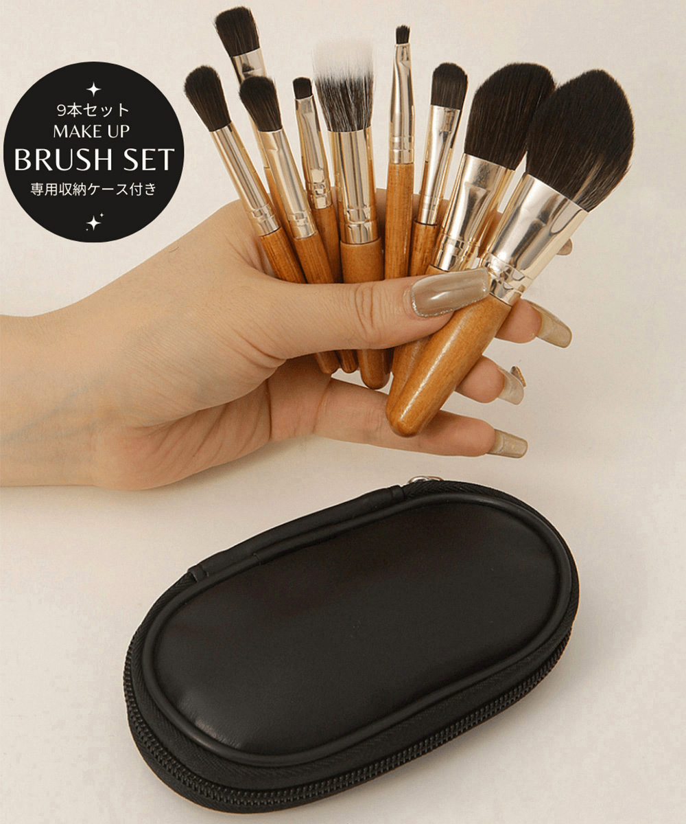 木製ハンドル メイクブラシ 収納ケース付きセットアップ 初心者向け持ち運びメイク道具 旅行便利グッズ 韓国風コスメブラシ メイク用品 お泊り プレゼント 贈り物 おしゃれ化粧ブラシ 木製ハンドルの温かみと、肌に優しいソフトな毛先が魅力のメイクブラシ9本セット。 専用の収納ポーチ付きで、持ち運びにも便利。 ファンデーションからアイメイクまで、幅広いメイク工程に対応。 木製ハンドルは持ちやすく、コンパクトなポーチにまとめて収納できるため、トラベル時にもスマートに持ち運べる。 デイリーメイクから旅先まで幅広く活躍し、コスメポーチに入れておけば、いつでも簡単にメイク直しが可能。 収納ケース素材:合成皮革 持ち手素材:白樺材 毛素材:繊維毛 カラー:ケースブラックブラシブラウン 【セット内容】専用収納ケース+ブラシ9本 収納ケースサイズ:H約13cmW約8cm ブラシ内容: 1.フェイスブラシ 2.シェーディングブラシ 3.チークブラシ 4.ブレンディングブラシ 5.アイシャドウブラシ(L) 6.アイシャドウブラシ(M) 7.アイシャドウブラシ(S) 8.アイブロウブラシ 9.コンシーラーブラシ 重さ:約85g
